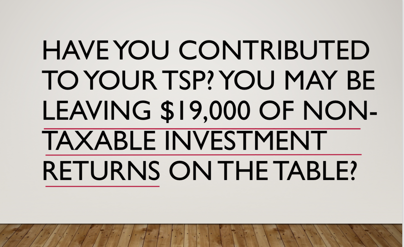 So why does any of this matter? As an active duty service member or civil servant you have access to an extremely large tax shelter for retirement investment income… $19,000 each year! Most people only have access to their Roth-IRA which is just $5,500 each year. Do yourself a favor and sign up for your TSP today! Otherwise, you’re leaving hard-earned benefits on the table.